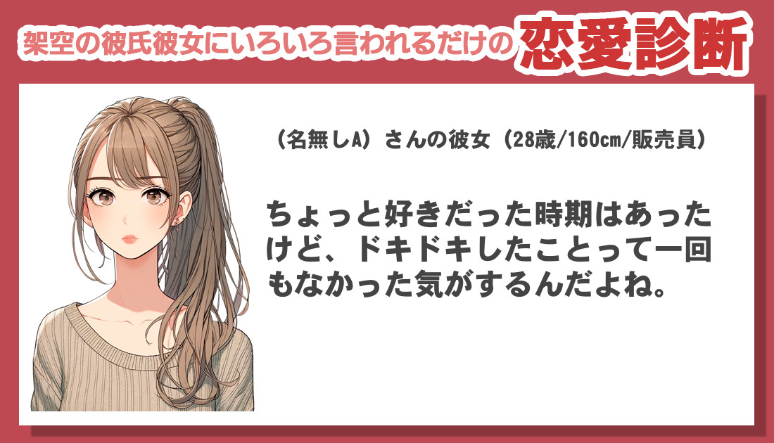 会話をしながら質問に答え、あとは彼氏彼女から言われ放題になるという、全く新しい恋愛診断です。